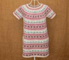 着易さを求めた形のチュニック、編みながら毛糸の配色は難しい、もうちょっと工夫できたかな、と悩みつつ編みました。